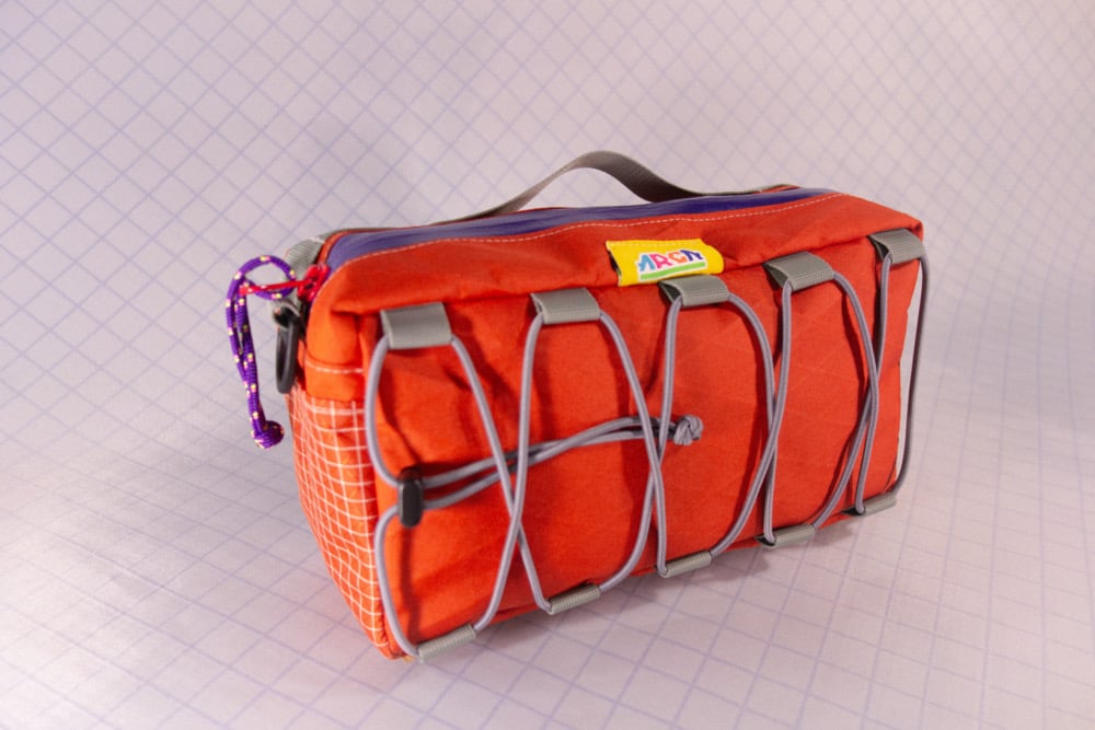 The Bossa is a multi-task bag sewn with Eco-pac, X-pac, and Ultragrid ripstop. It’s designed to fit on your bike handlebars and saddle, and can be worn at your waist or crossbody as an everyday hip bag.